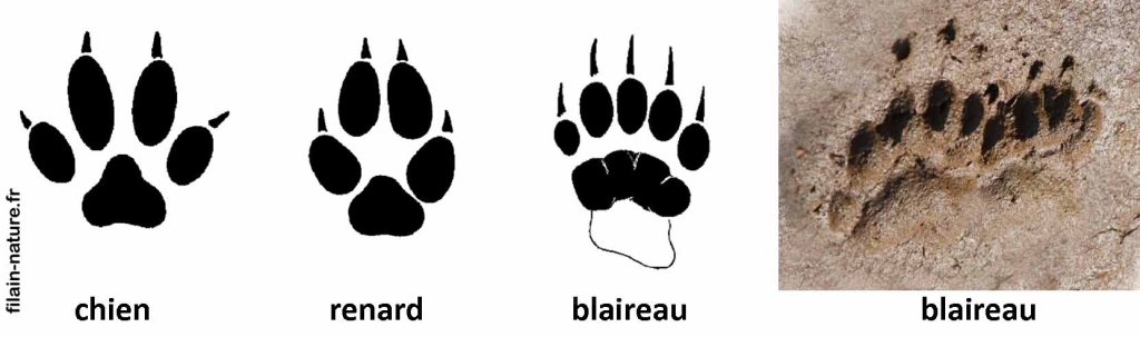 Comme ce sont des animaux relativement lourds, le passage répété d’un blaireau au même endroit affaisse le sol herbeux et forme un sentier très visible (on parle de coulées). Ce type de trace n’est pas spécifique aux blaireaux (les renards, lièvres, lapins, hérissons, les rongeurs … génèrent également une coulée plus ou moins marquée).