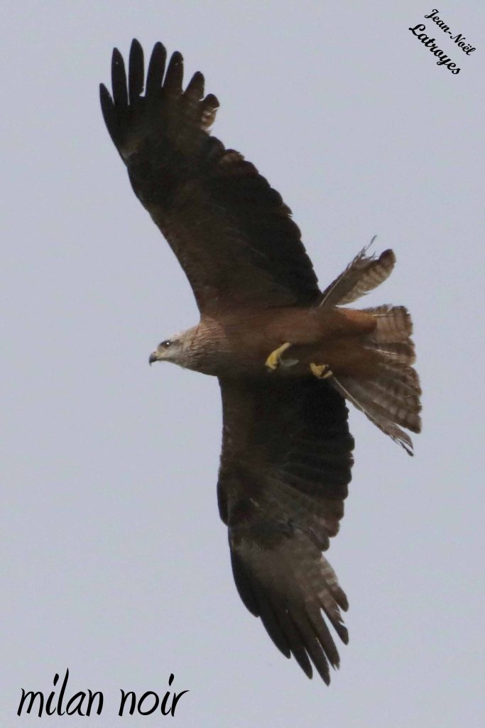 Ce milan était assez haut dans le ciel et moi au sol naturellement … On a pourtant l’impression que la photo a été prise au-dessus de l’oiseau (depuis un avion par exemple). Non, c’est simplement une phase où le milan virait de bord qui a été choisie, dévoilant ainsi le dos de l’oiseau et laissant le doute sur les conditions de prise de vue. D’où l’intérêt de multiplier les clichés (en rafale nourrie : au moins 3 images/seconde ou mieux en filmant en 4 K minimum) pour parvenir ensuite en triant bien à exprimer VOTRE idée de cette photo.